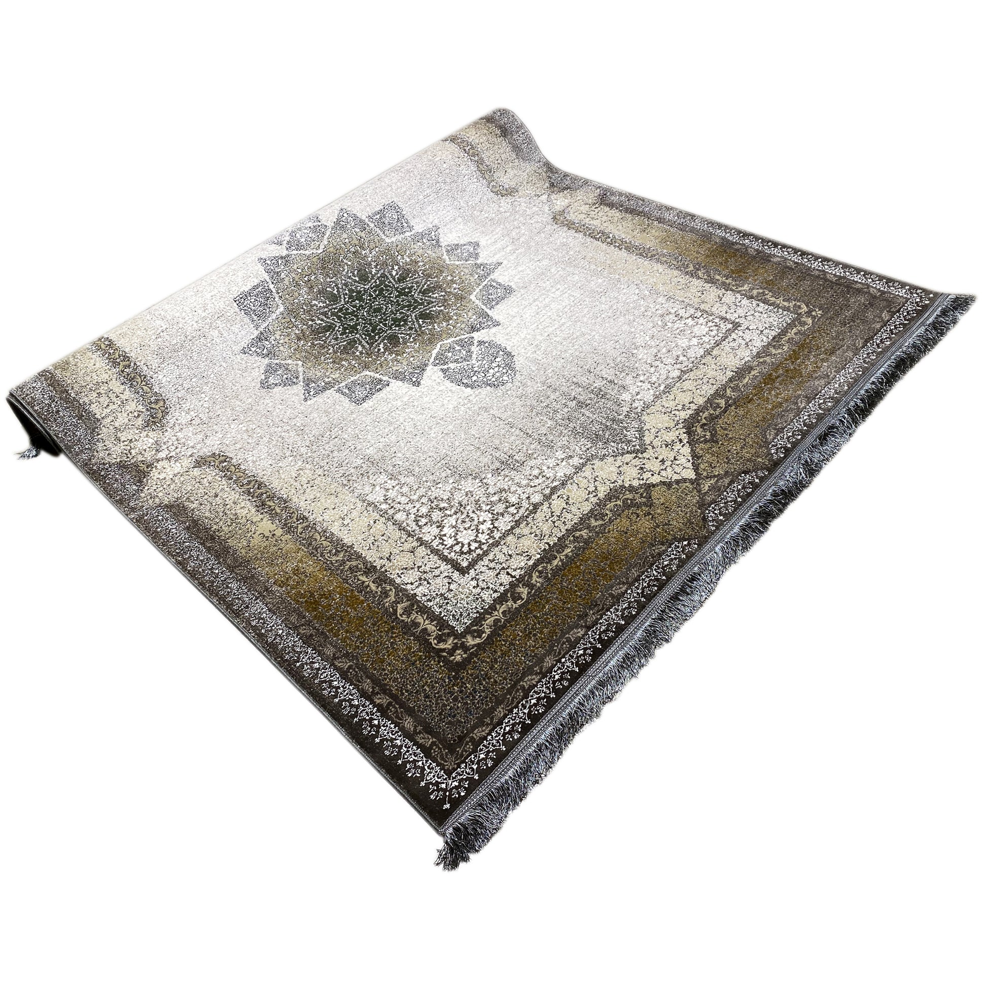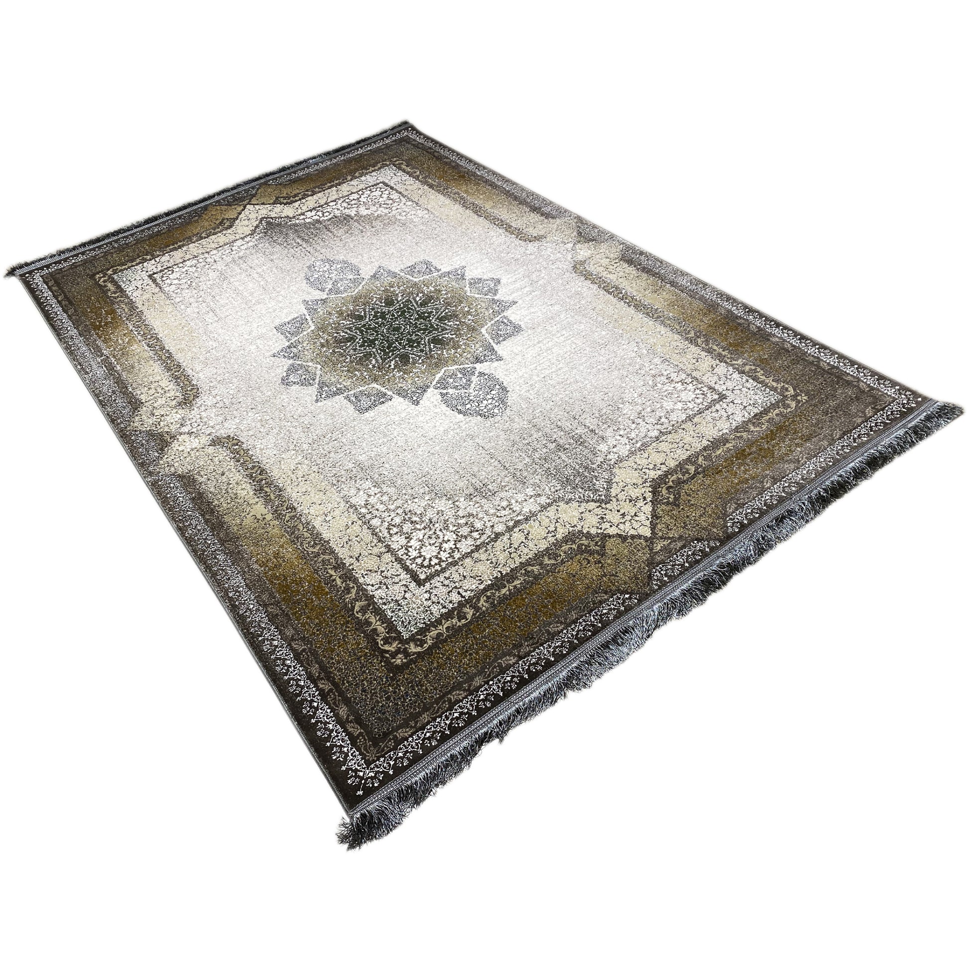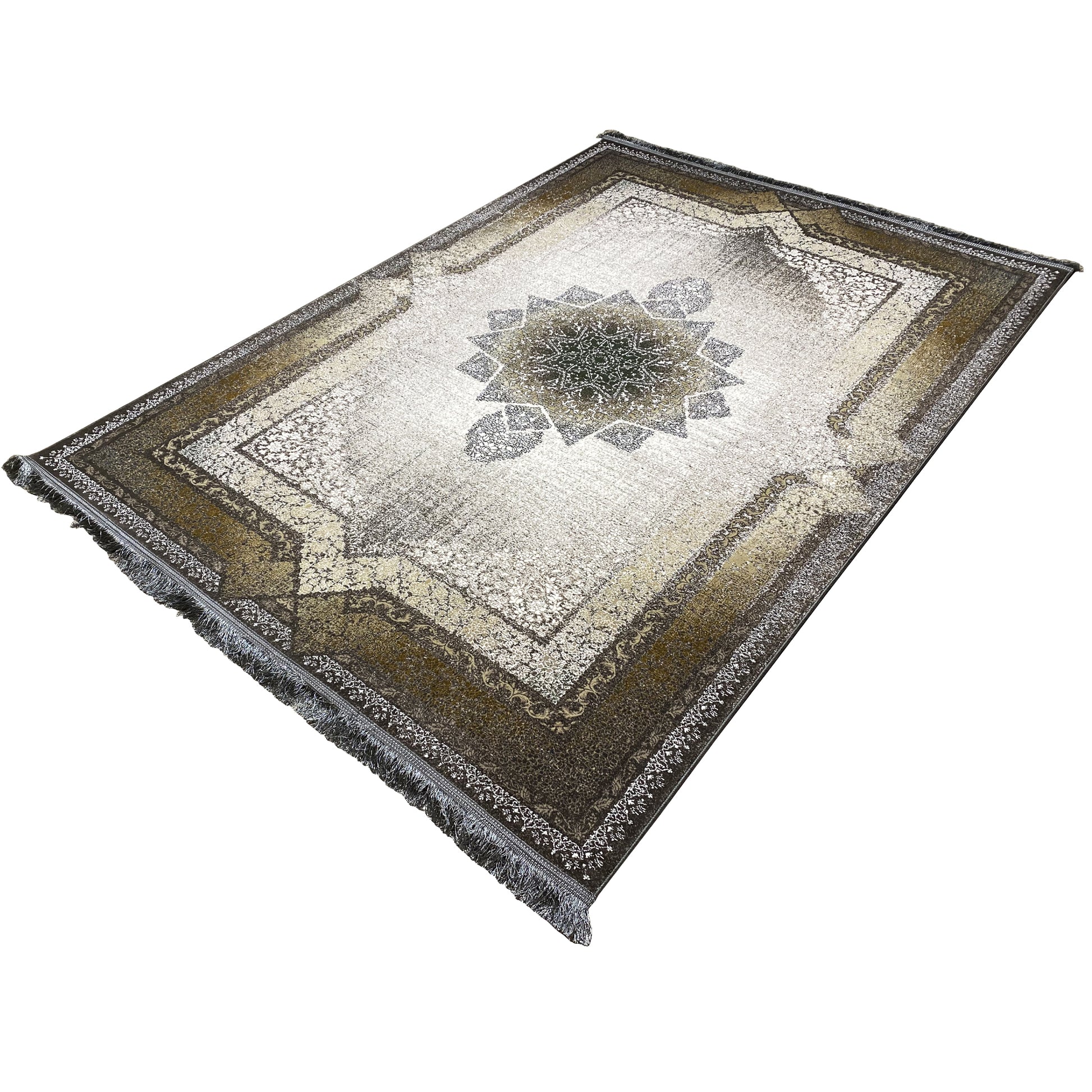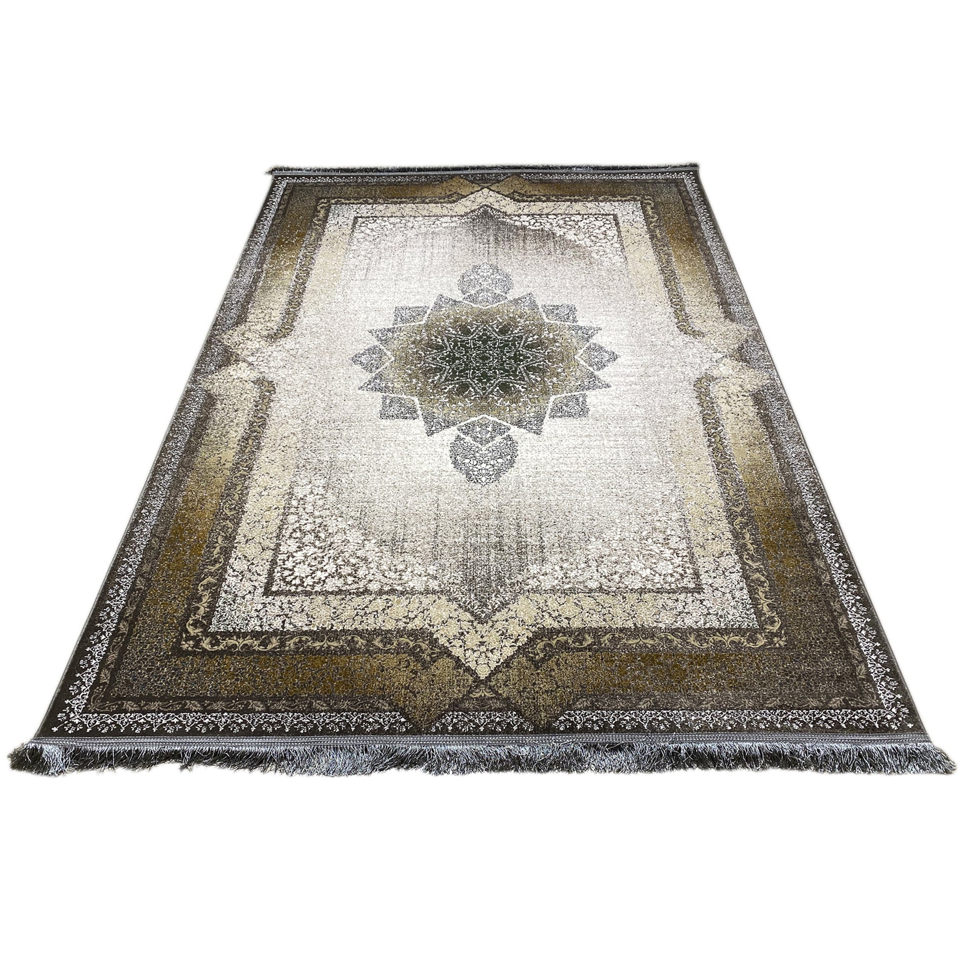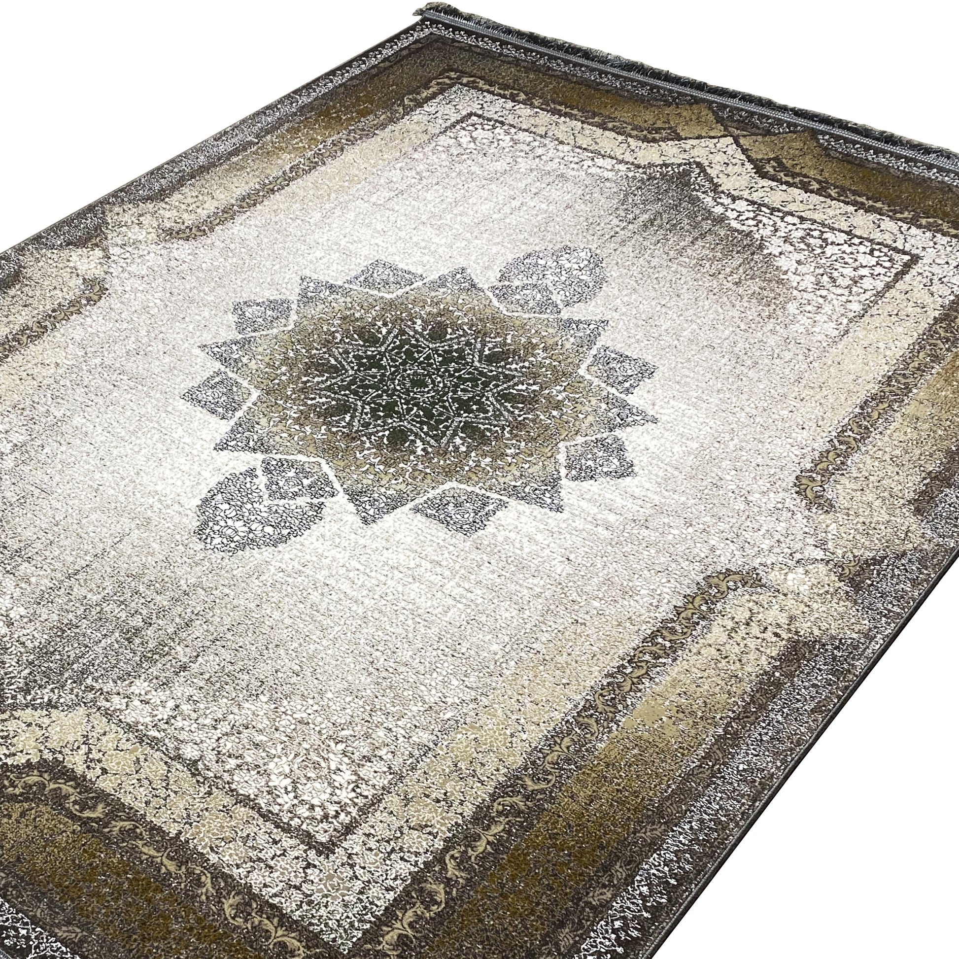 Geef uw huis een vleugje tijdloze elegantie met dit prachtige moderne klassieker-tapijt. Het opvallende geometrische sterpatroon in het midden vormt een indrukwekkend blikvanger, omgeven door een traditioneel versierde rand. De rookgrijze en beige tinten evenals de gebruikte look geven het een tijdloze uitstraling. Gemaakt van 100% hittebehandeld acryl, is dit zachte en duurzame tapijt ideaal voor drukbezochte ruimtes. De royale afmeting van 170x240cm maakt het het ideale statementstuk voor uw woon- of slaapkamer.