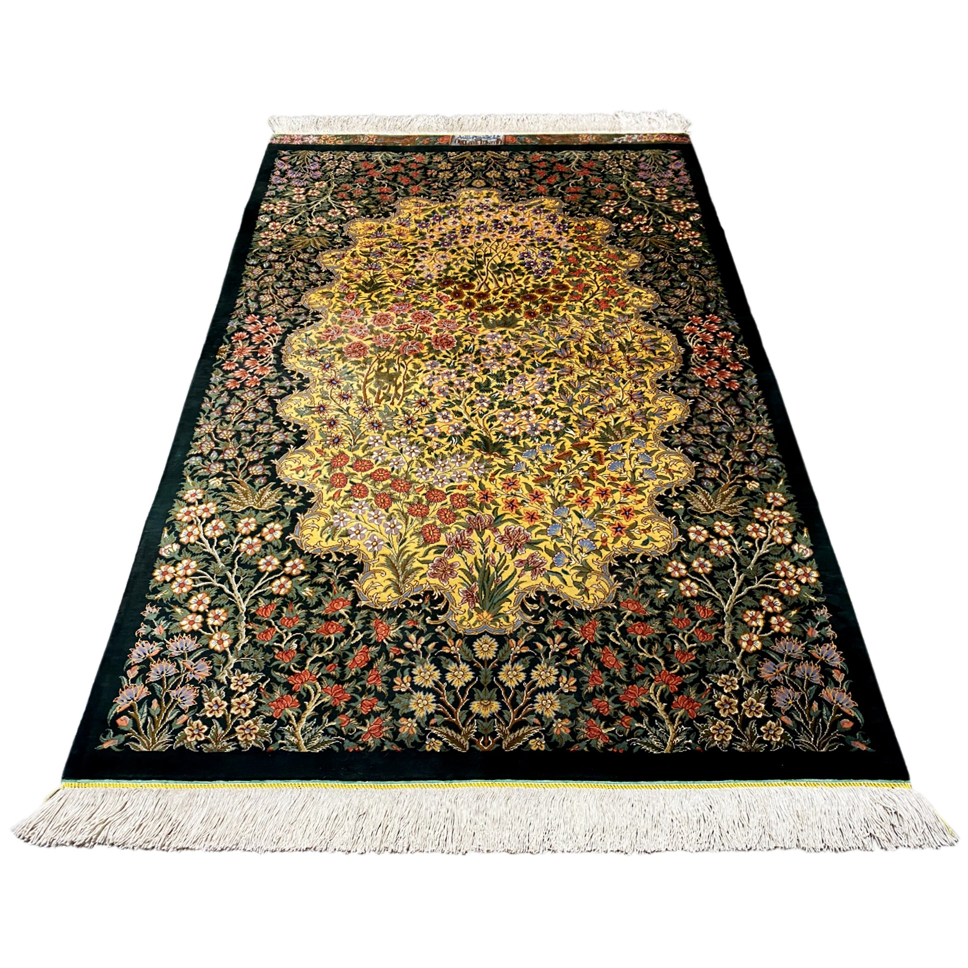 Ghom Teppiche werden in Zentralpersien in der Stadt Ghom geknüpft. Ein Seidenteppich aus Ghom beeindruckt selbst Sammler persischer Teppichkunst. Material der Teppiche ist Seide, was sie dünn und dicht macht. Sie zählen zu den feinsten und edelsten Perserteppichen und begeistern durch ihren einmaligen Glanz.