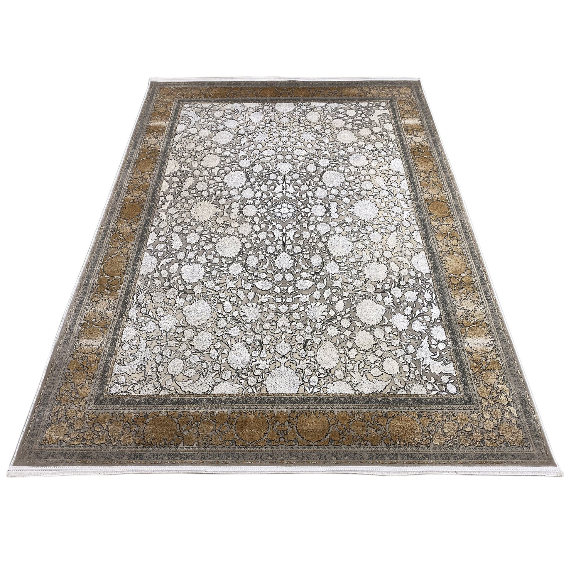 Verleihen Sie Ihrem Zuhause einen Hauch von zeitloser Eleganz mit diesem wunderschönen klassischen Teppich. Sein atemberaubendes durchgehendes Blumenmuster in schimmernden Silber- und Goldtönen schafft ein Gefühl von Luxus und Tiefe. Gefertigt aus 100% hitzebehandeltem Acryl, ist dieser weiche und strapazierfähige Teppich perfekt für stark frequentierte Bereiche und verbindet exquisiten Stil mit moderner Widerstandsfähigkeit. Die großzügige Größe von 170x240cm ist ideal, um Ihrem Wohn-, Schlaf- oder Esszimmer einen raffinierten Blickfang zu verleihen.